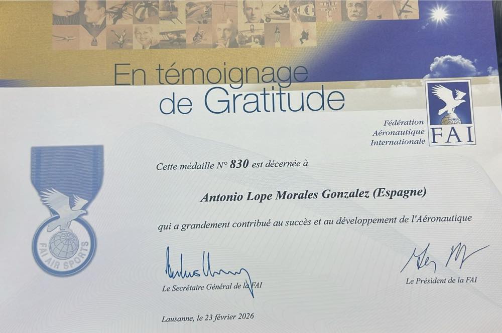 La FAI concede la Medalla del Deporte Aéreo a Antonio Lope Morales.